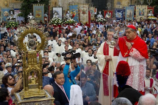 ナポリではサン・ジェンナーロの祭りがあります。イタリア3大祭りの一つと言われ、大変な信仰を集めてきました。ナポリで聖ジェンナーロを知らない人は居ません。史実としては証明できないけれど、キリスト教が公認されるちょっと前、迫害が最も激しかった頃305年に殉教したと言われるカトリックとギリシャ正教の聖人です。