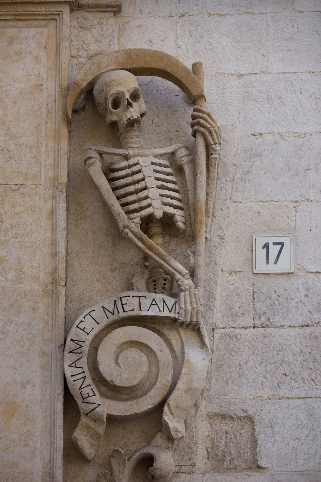 煉獄聖堂の入り口を守る骸骨の一体。Chiesa del Purgatorio