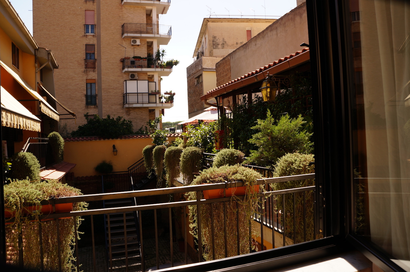 いよいよ最後のホテルは当然ナポリ。何があるか分からないから、絶対出発の前の日には空港がある街へ泊まる。本当はカゼルタへもう一泊してナポリは一泊のつもりだったんだけど、今まで一度も降らなかった雨が、みんなが帰国した途端せきを切ったように降ってあまり動けなかったから、ナポリへ戻って来た。ベネヴェントは次回に。ここでは空港行きのバス停に近い安いホテルを選んだ。ホテル名もそのまま「駅」。ところがホテルって何???カオス状態の人々を掻き分けながらホテルの住所へ行くと、怪しげな建造物の奥へ。一応中庭形式でエレベーターがあったからホッとする。だってB&Bでなくホテルにした理由は、最終日で荷物が重くなってるから階段を持って上がらずに済むように、ってもの。それなのに一階(日本の二階)へは使えないという、鍵付きのエレベーター!え〜っ!て落胆を身体表現したら、南部にはどこにでもいる、1年中同じ場所でぶらぶらしてるおじさんがホテルの人を呼んで来てくれて、彼が運んでくれた。マウリツィオという名前。朝食スペースもないし、ホテルの概念を撃ち壊すところだったけど、マウリツィオのおかげで非常に快適に過ごせた。WiFiの状態を最高に設定し直してくれてスムーズにチェックインも済んだし、窓からは興味深いナポリ生活も見られた。